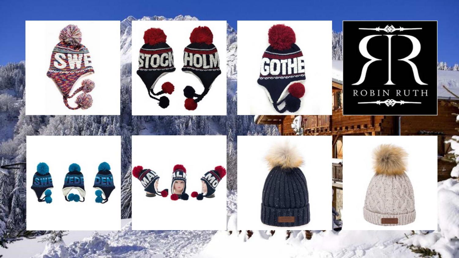 Warm knitted winter hats and mittens from Robin Ruth for winter and snow in Scandinavian style with Swedish text like Stockholm, Gothenburg and Malmö. Dress up for the ski trip. Women’s, men’s and kid’s models. Scarves and shawls in trendy trendy colors.