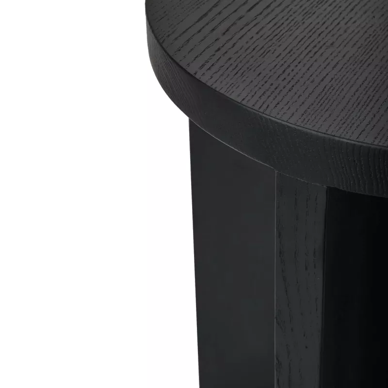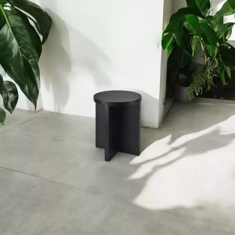 The COLE stool features beautifully visible wood grains beneath a matte black lacquer finish, giving it a refined yet natural appearance. Its clean lines and minimalist design make it an excellent choice for modern interiors. Whether used as a side table or seating, it’s ideal for the bathroom, living room, or bedroom.