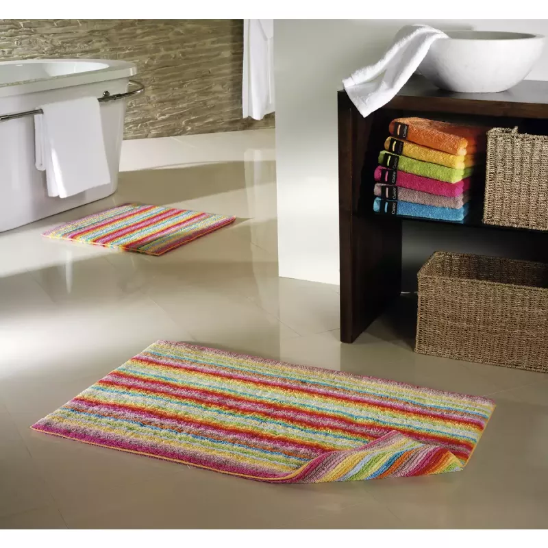 Thick fluffy bath mat of 100% combed cotton 2200gsm. The premium quality mat 7008-25 from CAWÖ’s Lifestyle series with its modern look is very absorbent and it is reversible. The timeless striped multi color pattern gives an exclusive touch to the bathroom and the colors of the carpet match with the bath towels from the same series. It is very easy to wash and keep clean and can be tumble-dried. The mat is available in the sizes 60x60, 60x100 and 100x120 cm.