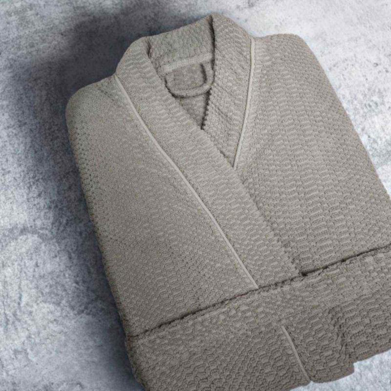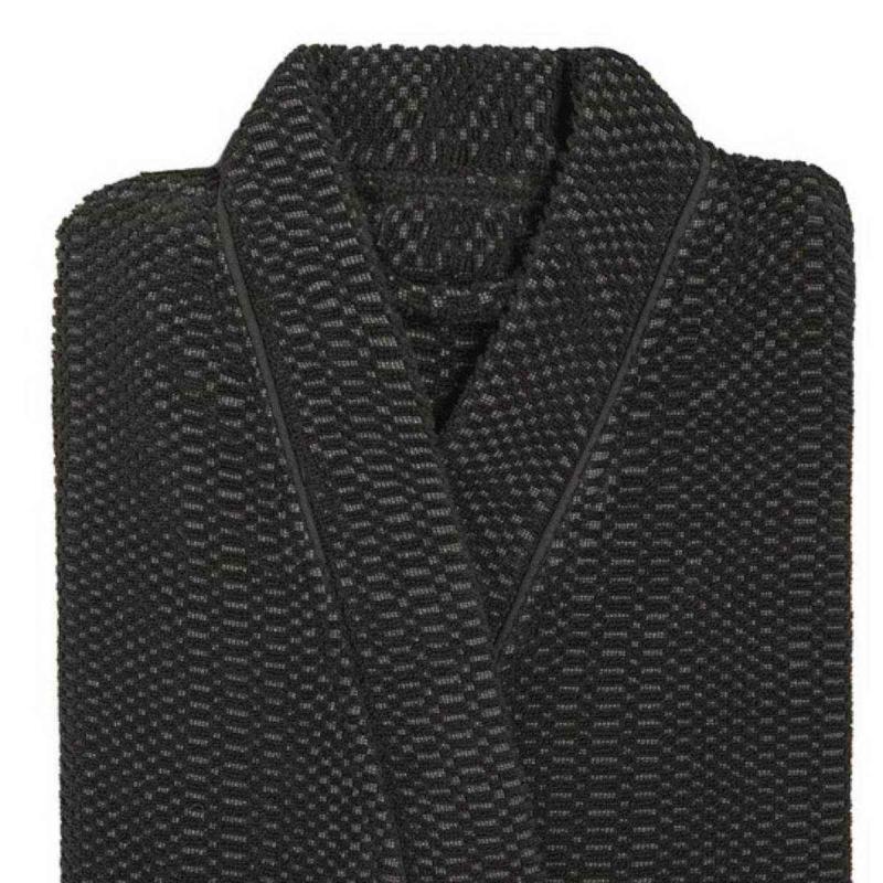 Made in Portugal with a sustainable approach, this Graccioza kimono style unisex bathrobe Clean Ocean is a mix between the finest cotton and polyester seaqual, which is a type of polyester made with plastic, recovered from the oceans. The pre-washed and pre-shrunk extremely soft 550gsm bathrobe is available in 2 colors. The sophisticated and extremely smooth robe has a waffle design texture, and it is very soft to touch and to the skin. Enjoy a luxury feel and a cosy atmosphere with this very absorbent bathrobe that comes in a gift box packaging.