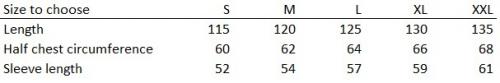 Size: S, M, L and XL - Length before washing 115 to 125cm