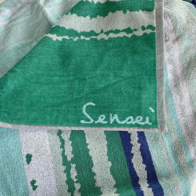 Sensei Maison beach towel 100X180 Blue Lagoon. Relax on the beach with this super soft large beach sheet with a lovely velour surface! A bath towel made of 100% high-quality cotton, composed of an absorbent jacquard velvety smooth surface for more softness and top-class comfort! The density 420gr / m² makes the beach towel both light and absorbent, which makes it an ideal companion on your holiday!