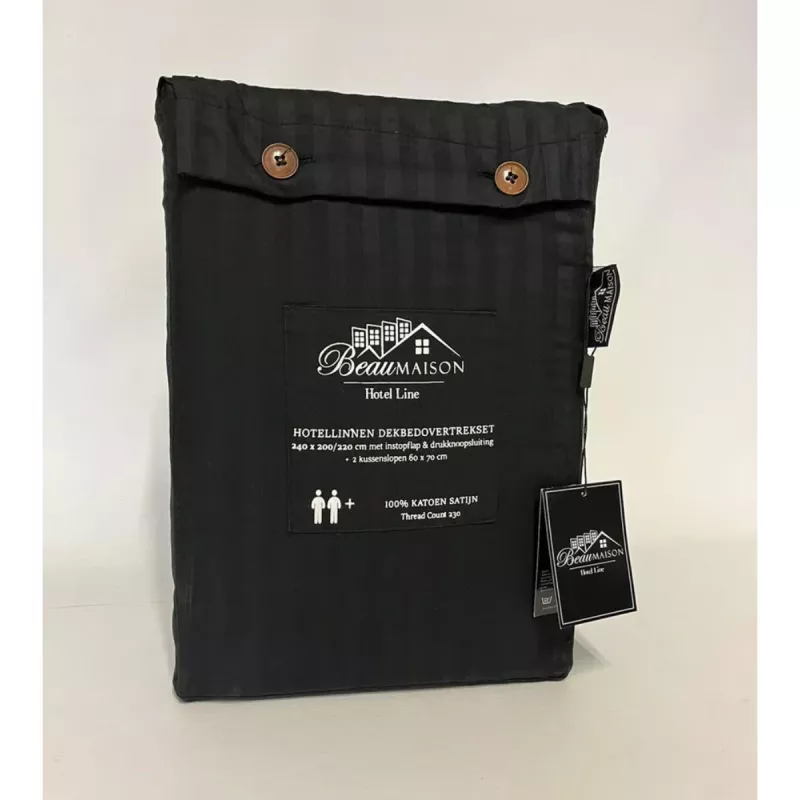 Beau Maison Satin Duvet Cover Set Hotel Line Black – Elegant Comfort.