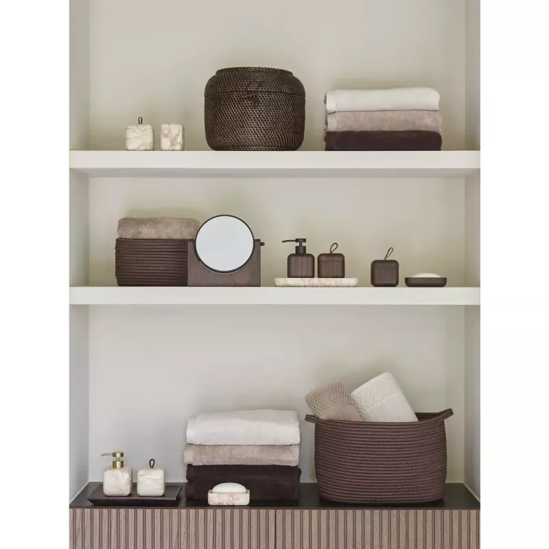 Add elegance and harmony to your bathroom with the Aquanova Blake Soap Dish in Desert. This exclusive accessory is handmade from natural stone, featuring soft rounded shapes and refined beige marbling that evoke a luxurious, spa-like atmosphere.