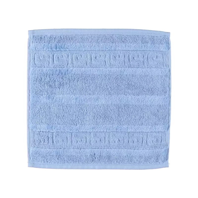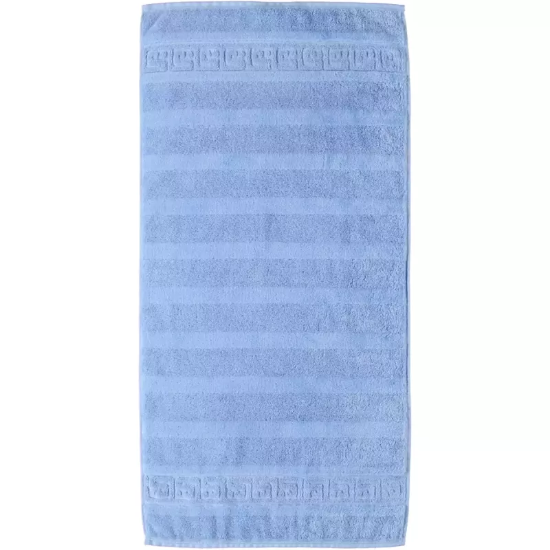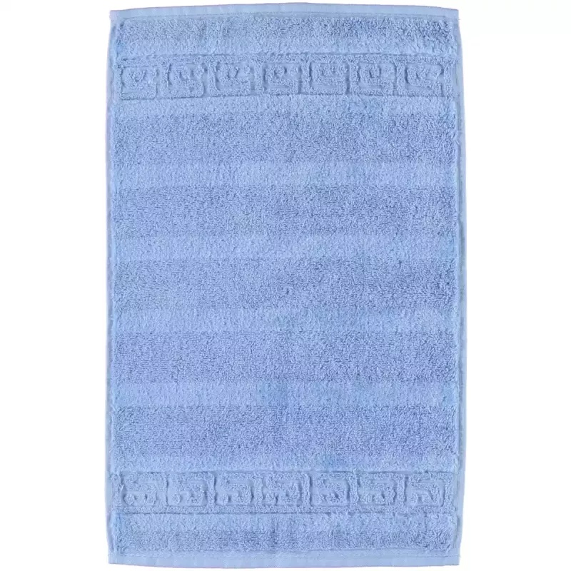 Introduce a serene and refreshing touch to your bathroom with the Cawö Towel Noblesse Light Blue 1001-188 Solid Color, a premium offering from the German brand Cawö. Part of the esteemed Noblesse Uni 1001 series, this towel epitomizes simple luxury with a purist design accented by a classic meander border, bringing a stylish flair to your personal wellness space.