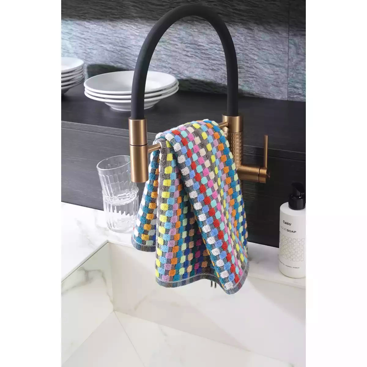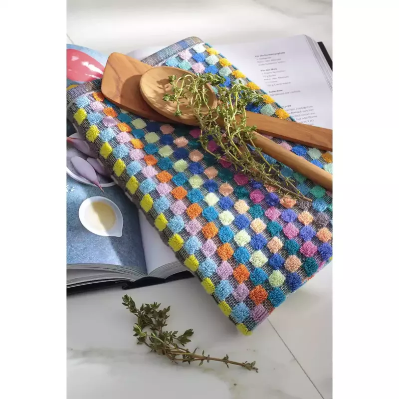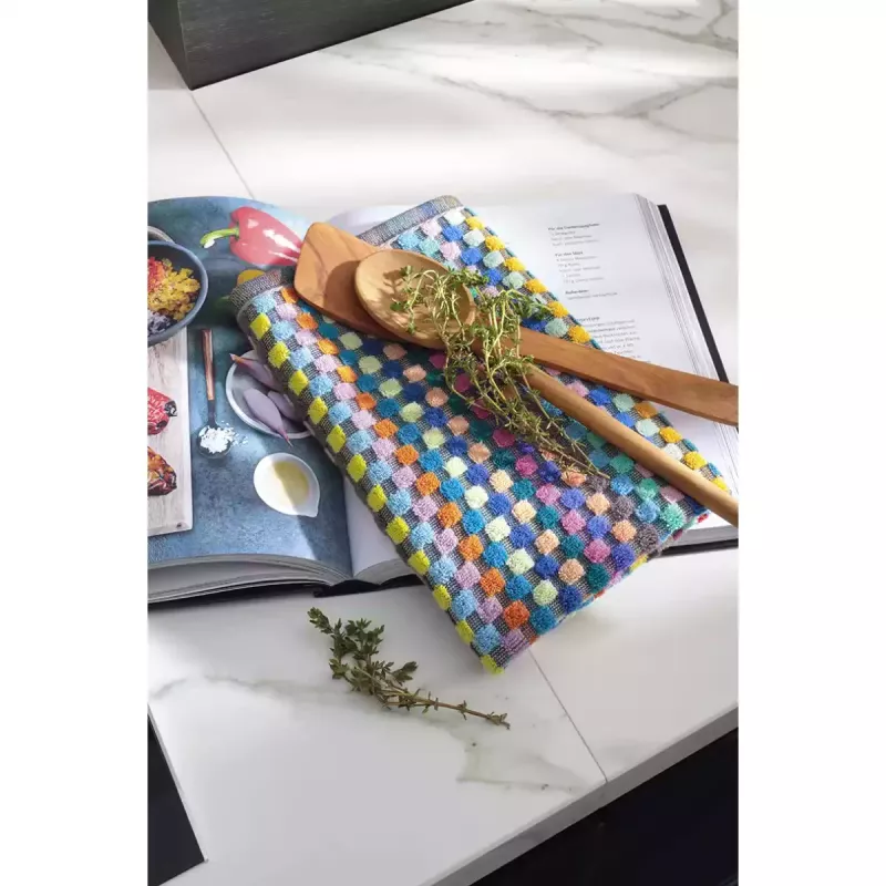 Cawö Confetti Karo dish towel in 100% cotton 50x50 cm in a multicolor checkered design is a vibrant and practical addition to any kitchen. Combining eye-catching style with high-quality terry fabric, this towel is ideal for those who want both functionality and decorative appeal. Made in Germany from 100% pure cotton, the towel offers a soft, skin-friendly, and durable quality designed for everyday use.