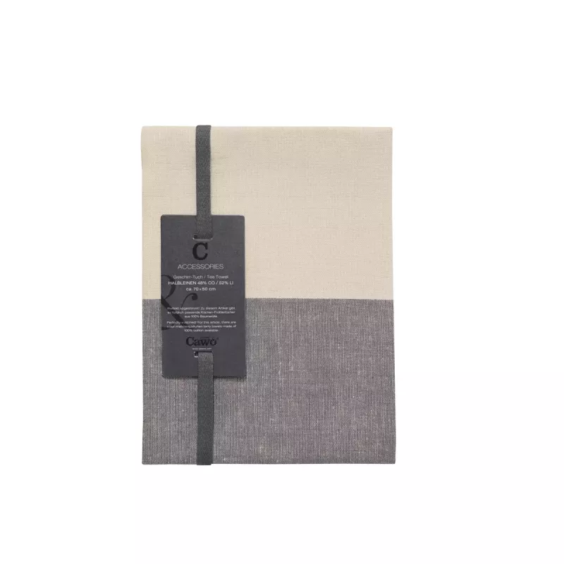 Cawö Cuisine Duo kitchen towel in linen-cotton 50x70 cm in the basalt grey and linen beige color combination is a refined and modern choice for creating a calm and stylish kitchen atmosphere. This practical 2-pack combines premium functionality with a sophisticated color blocking design that delivers a balanced and elegant look.