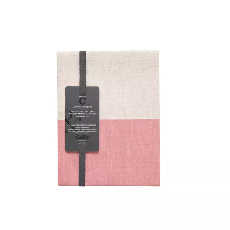 Cawö Cuisine Duo kitchen towel in linen-cotton 50x70 cm in the sorbet pink and travertine beige color combination is a soft and stylish choice for creating a bright and harmonious kitchen atmosphere. This practical 2-pack combines high functionality with a modern color blocking design that delivers an elegant and trend-conscious look.