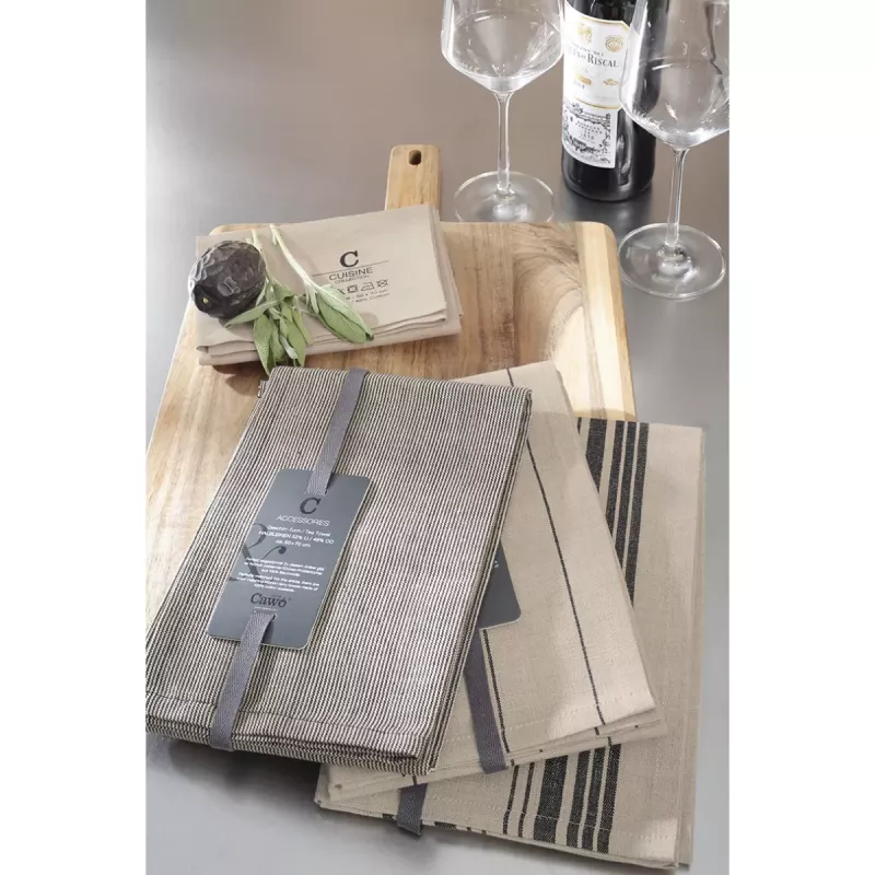 Cawö Cuisine Nature accent kitchen towel in linen-cotton 50x70 cm in wasabi green is a fresh and stylish choice for creating a vibrant and modern kitchen atmosphere. This practical 2-pack combines premium functionality with a distinctive side-stripe design that adds a dynamic and refined look.