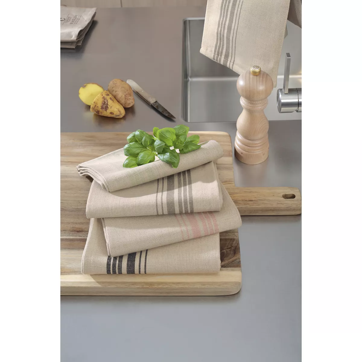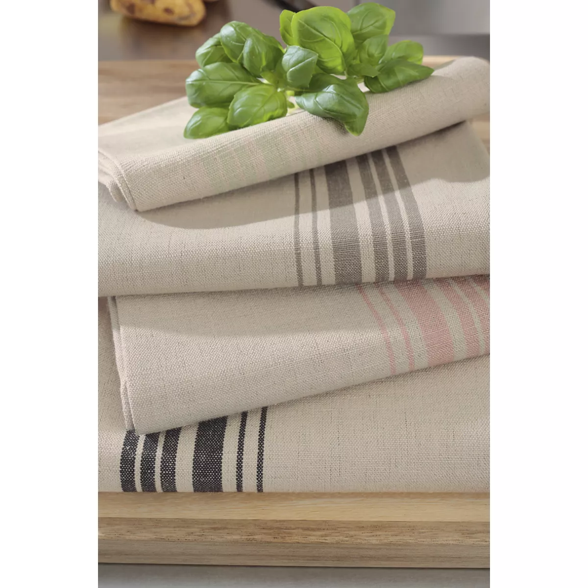 Crafted from a high-quality blend of 52% linen and 48% cotton, these towels offer an ideal balance of durability, absorbency, and comfort. Linen fibers ensure quick drying and long-lasting performance, while cotton adds softness and flexibility, making them perfect for everyday kitchen use. The accent stripe design in wasabi green delivers a lively and natural aesthetic inspired by greenery and Scandinavian interiors. The color adds freshness and energy while maintaining a calm and balanced appearance. The design integrates seamlessly into both modern and classic kitchens.