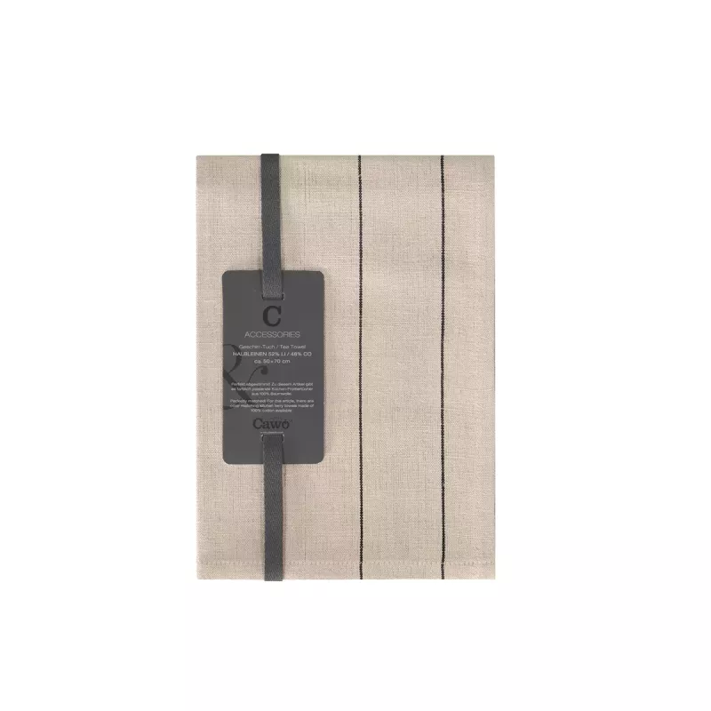 With its generous 50x70 cm size, the towel is versatile and suitable for all kitchen uses. It works perfectly as a dish towel, drying cloth, or decorative textile. Its high absorbency ensures efficient drying, while the durable fabric maintains performance over time. Machine washable at 60 degrees and suitable for low tumble drying. The Cawö Cuisine Nature striped kitchen towel in linen beige is an excellent choice for anyone seeking a durable, absorbent, and aesthetically refined linen-cotton towel with a timeless and natural character.