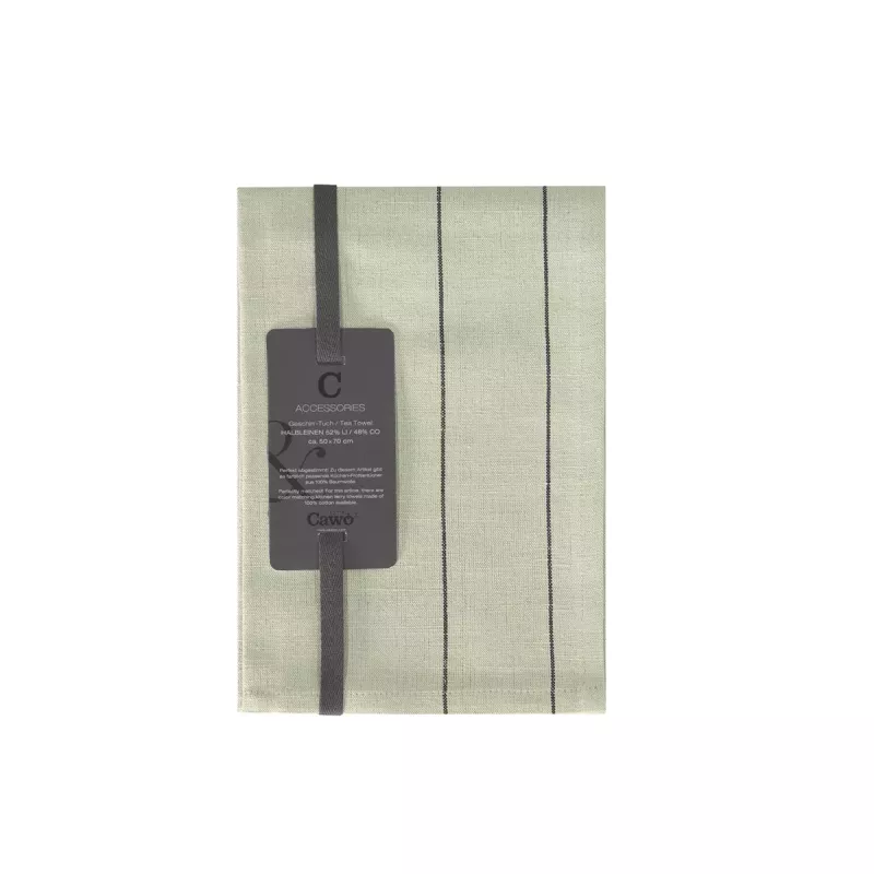 Cawö Cuisine Nature Striped Kitchen Towel - Tea Towel 2-Pack Linen Blend 50x70 cm - Wasabi Green