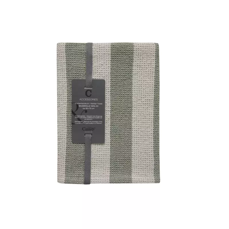 Cawö Cuisine Piqué Kitchen Towel - Tea Towel 2-Pack Cotton 50x70 cm - Field Green Natural Beige
