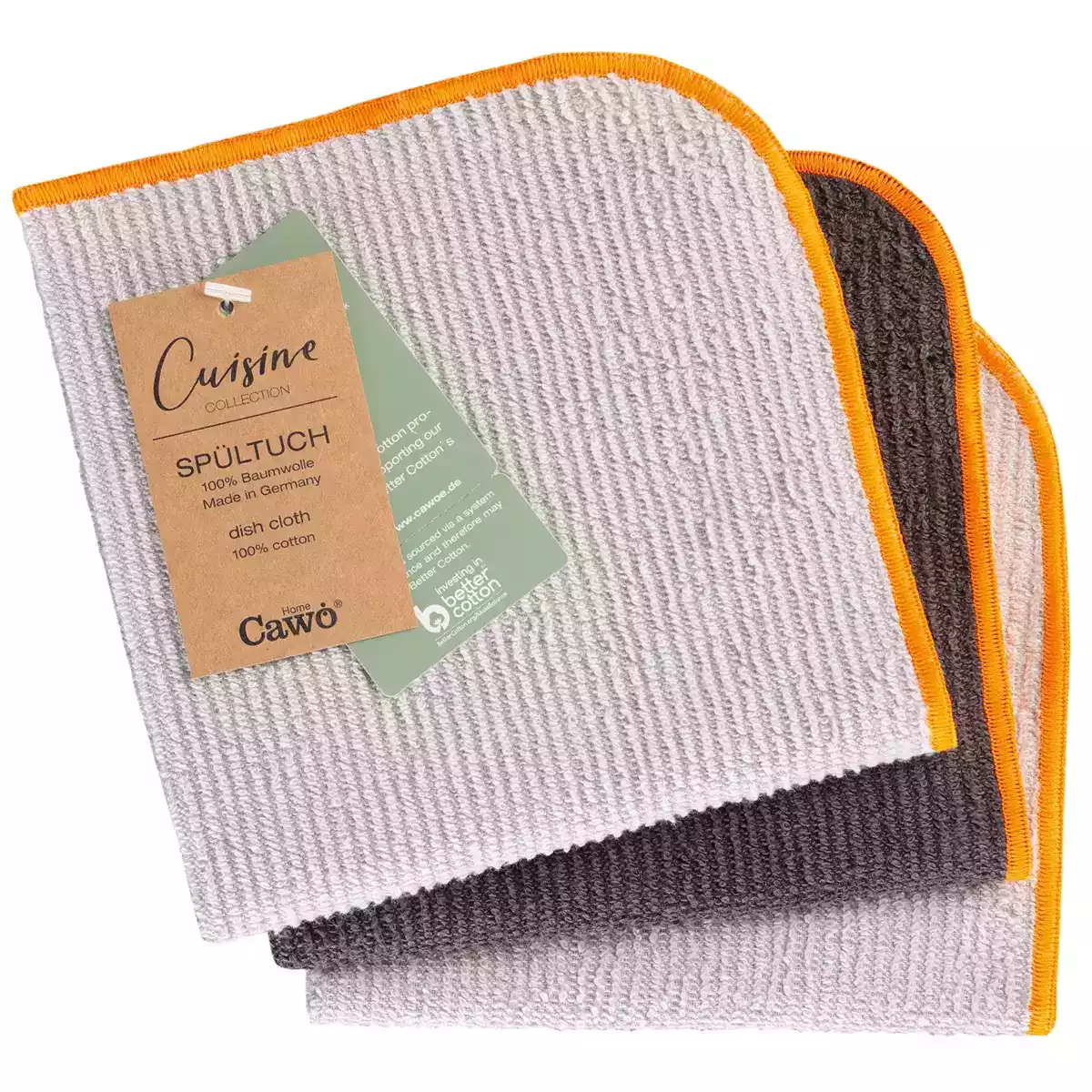 Cawö dish cloth 3-pack in 100% cotton 30x30 cm in neon orange is a vibrant and practical solution for everyday kitchen cleaning. These reusable terry cloths combine high absorbency, durability, and a soft feel, making them ideal for daily use.
