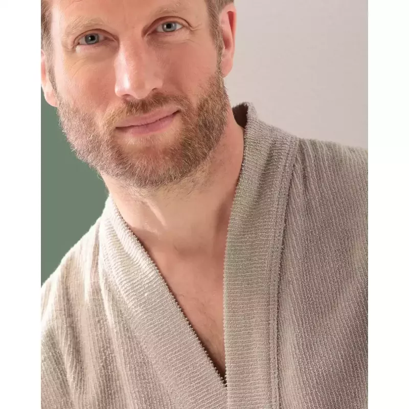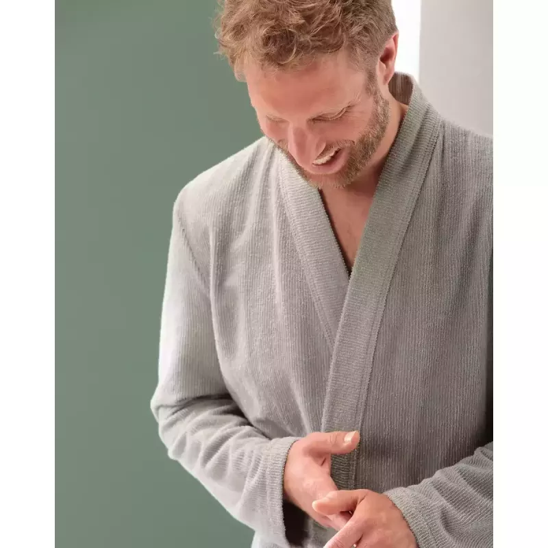 Elegant Ribbed Design: The distinctive ribbed texture and subtle striped pattern add a touch of timeless elegance and sophistication to your loungewear collection. This design, coupled with the stone grey color, makes the robe a versatile and stylish choice.
