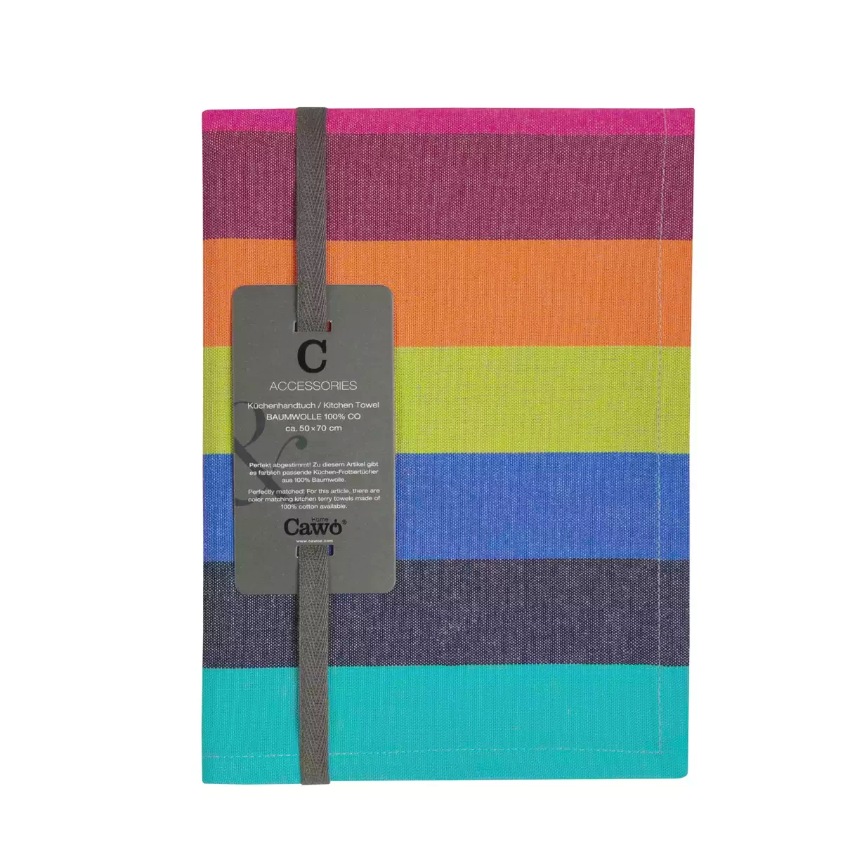 Cawö Lifestyle block striped dish towel in 100% cotton 50x70 cm in a dark multicolor design is a stylish and functional choice for those who want to create a modern kitchen with clear structure and depth in color. The bold block stripes provide a contemporary graphic look that conveys both order and design appeal. Made from 100% pure cotton, this kitchen towel offers excellent absorbency, durability, and a pleasant texture.