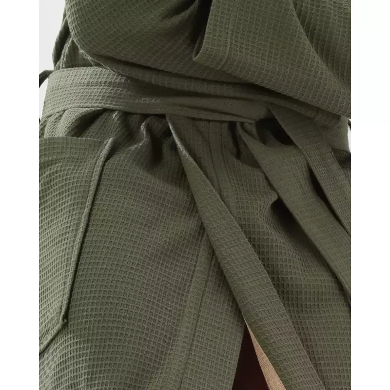 Indulge in the luxurious lightness of the 100% cotton pique fabric, designed for those who appreciate refined simplicity. The robe’s extra-light quality ensures breathability and a soft touch, making it an ideal choice for wellness retreats or relaxed days at home.