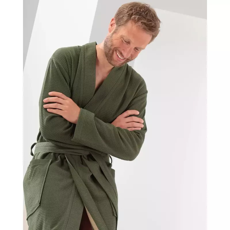 - Attractive men's bathrobe with a lightweight pique fabric