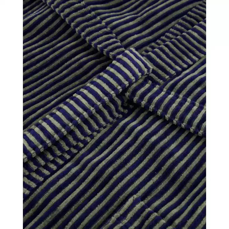 Featuring a striking blue field color with an attractive striped design, this kimono robe is the epitome of classy loungewear. The high-quality velour fabric, made from 100% pure cotton, ensures a soft, plush feel that brings luxury to your everyday routine.