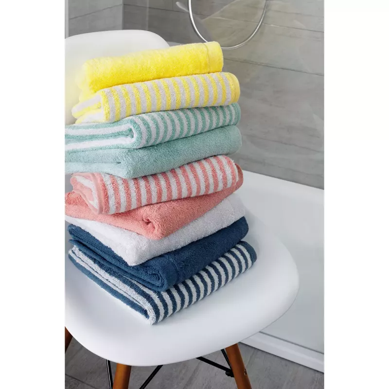 Enjoy the enduring beauty and softness of this lemon-striped towel with minimal effort. It is designed for easy care, machine washable at 60°C, and suitable for tumble drying on a low setting. This convenience ensures your towel remains vibrant, fluffy, and fresh, ready for your next relaxing bath or shower.