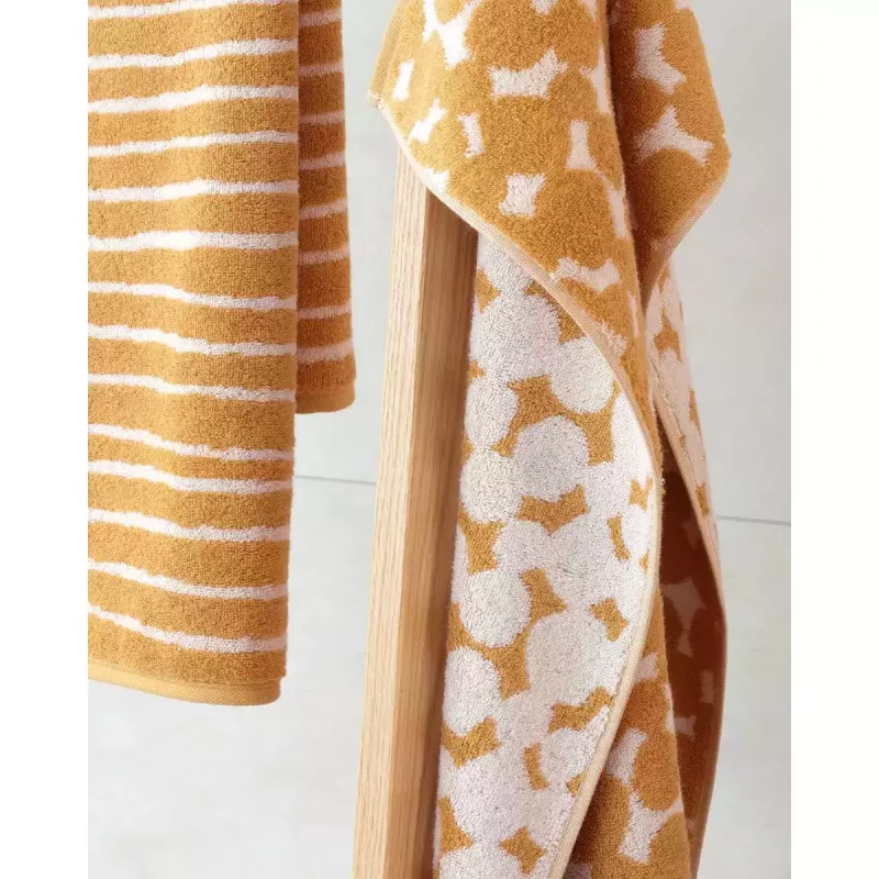 Crafted with a contemporary line design in the rich, inviting hue of Scotch, this towel adds a sophisticated flair to any bathroom decor. Made from 100% fine cotton, it guarantees not just visual appeal but also an unrivaled softness and impressive absorbency, setting new standards for what towels can offer.