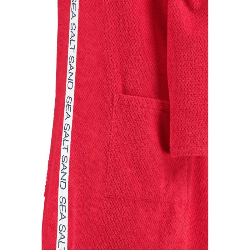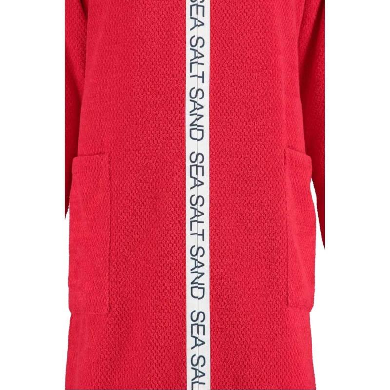 - Maritime optics: Embrace a nautical vibe with this bathrobe's maritime look. The red color and SEA SALT SAND lettering along the border add a stylish touch, making it stand out from ordinary bathrobes.