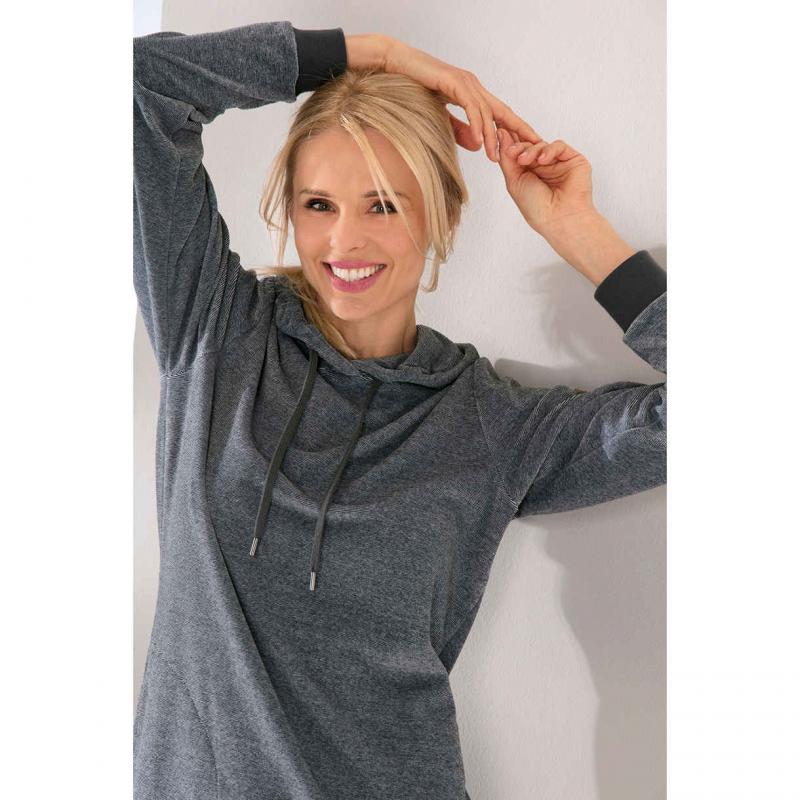 This soft women’s hooded sweater 818-77 from Cawö Home convinces with a modern look and high quality. The anthracite hooded velour sweater has and a skin-friendly cotton blend fabric to be soft against the skin. Cawö-terry is manufactured in Germany and tested according to Oeko-Tex Standard 100 without harmful level of harmful substances.