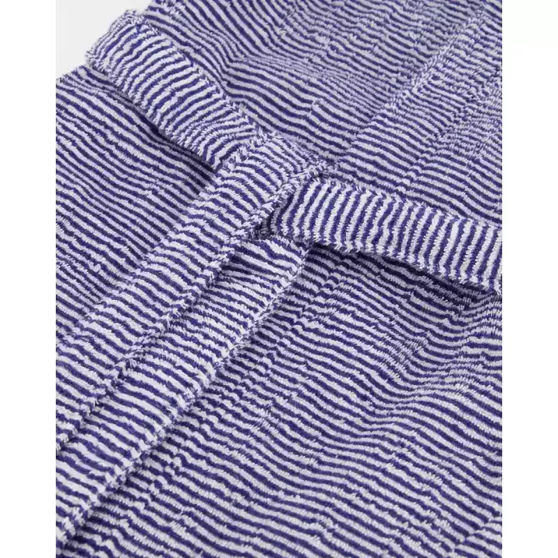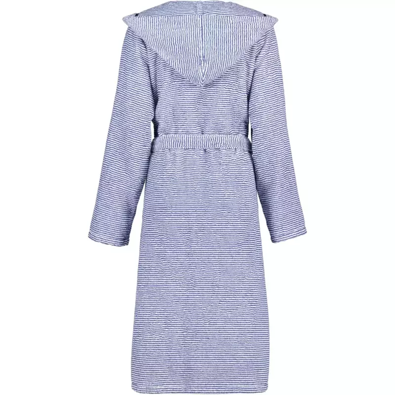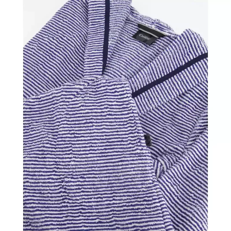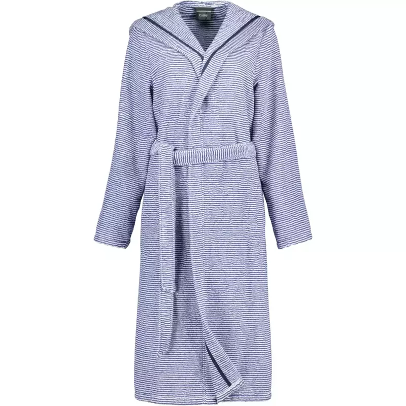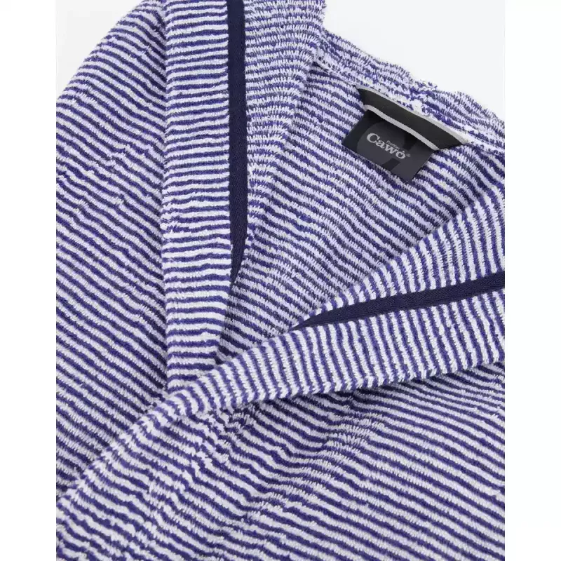 Introducing the Cawö Women's Hooded Robe 3336-16, a masterpiece that embodies the essence of nautical elegance in a navy and white striped design. This luxurious robe, crafted by the esteemed German brand Cawö, is made from 100% high-quality cotton, ensuring a soft, plush experience that envelops you in comfort and style.