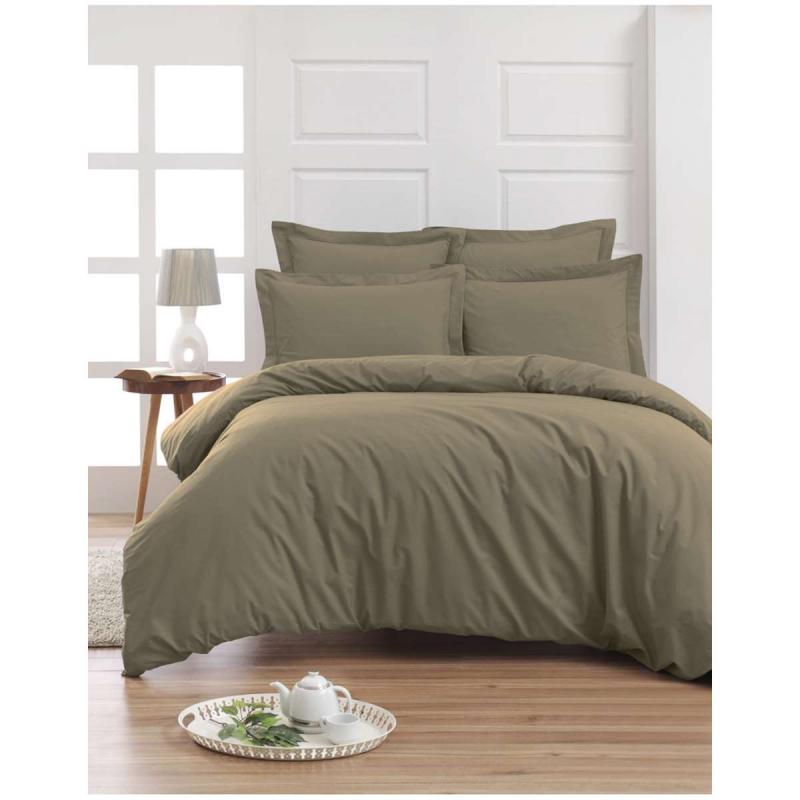 Plain percale woven fitted sheet SENSEI SOFT Easy Care taupe 80 threads/cm² from Sensei Maison. A percale bed sheet from 100% high quality cotton where only the finest fibers have been used. Your Easy Care fitted sheet comes out of the machine without having to be ironed, and if you still want to iron it is easier than other sheets.