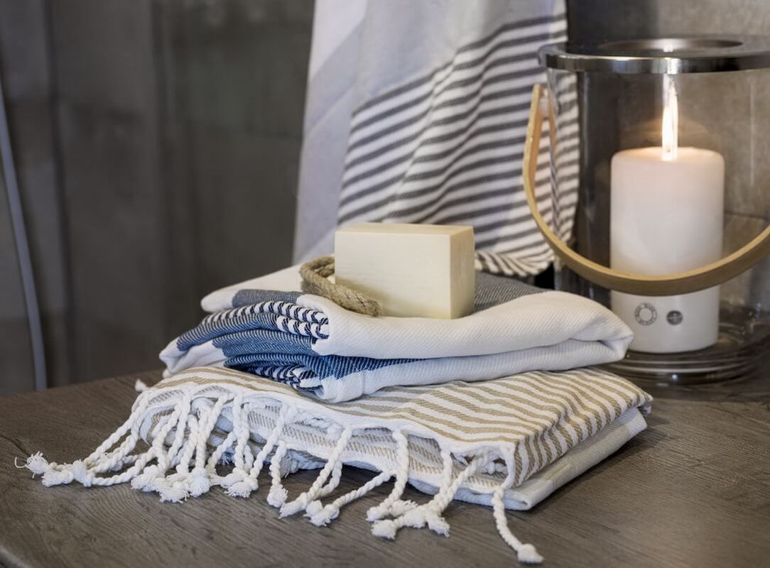 Hamam towels are available in different qualities in the market. We have chosen manufacturers who offer high quality, and materials and manufacturing methods that are not harmful to humans and nature. Casa Zeytin's hammam towels are usually made of high quality cotton in Turkey or Portugal, but we also have linen hammam towels and sometimes bamboo towels. Many of the towels are hand crafted on traditional looms. Some well-known brands we offer include Bricini, Cawö, Sagaform and Sensei Maison. The towel is also called peshtemal or fouta.