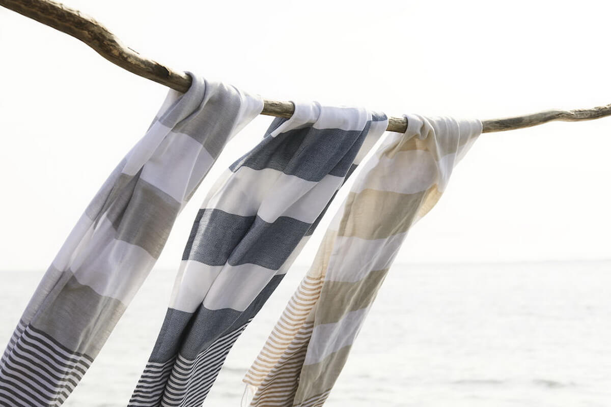 A hammam towel is thinner than a traditional terry beach or bath towel. The hammam bath towel has a low weight, takes up little space and is therefore easy to bring in your suitcase, beach bag or backpack. They dry quickly, are easy to wash in the hotel room and the sand does not stick on the beach.