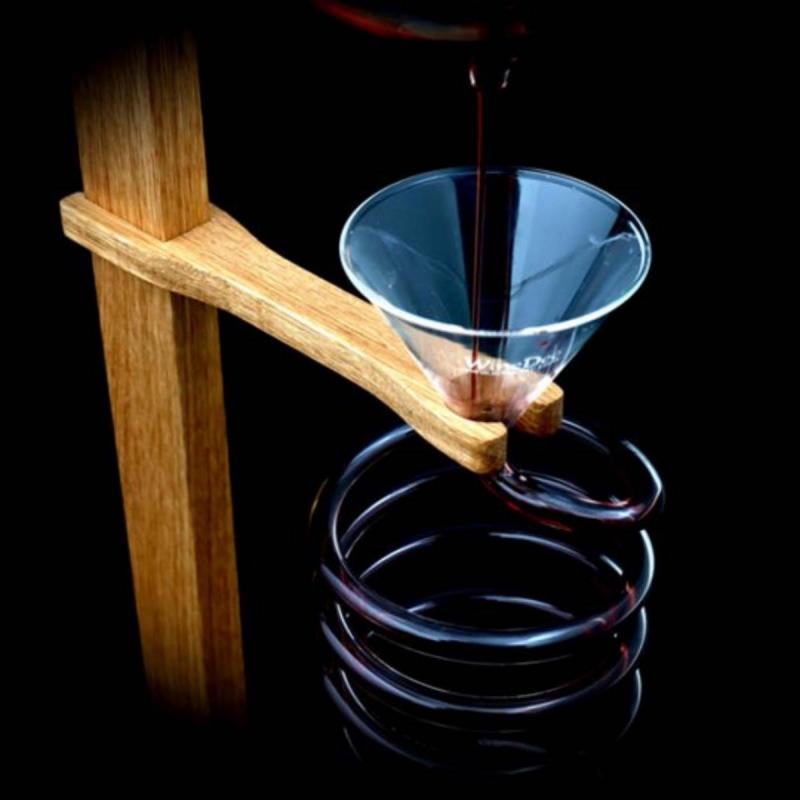 WINEDEC wine decanter from, designed by wine experts, for everybody to enjoy good wine. The most elegant and entertaining way of decanting and aerating wine. Completely handmade from Swedish laboratory-grade glass and Swedish oak of the highest quality. The unique design of WINEDEC removes wine sediment, and the precision spout creates a gentle vortex of wine and air for optimal flow. The aerating spiral offers a mesmerizing experience while exposing the wine to just the right amount of air.