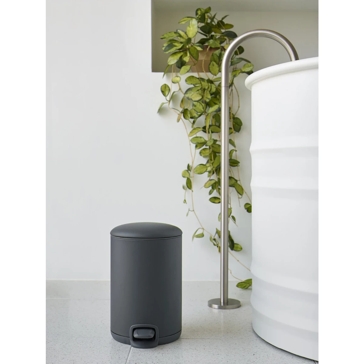 The Kaz Pedal Bin 3 L Dark Grey by Aquanova is a modern and elegant pedal bin that combines high functionality with timeless design. With its sophisticated dark grey, almost anthracite matte finish and uniform colour on all parts – including the lid, pedal, and hinge – this waste bin is a perfect addition to any bathroom, toilet, or kitchen where both style and practicality matter.