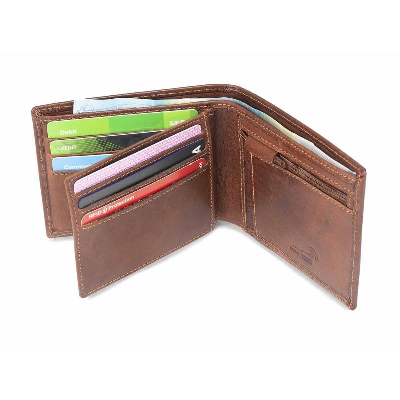 - Efficient Organization: This wallet offers two banknote compartments for neat cash organization, along with a secure coin compartment featuring a convenient zipper closure. With 6 card compartments, 3 open compartments for receipts or extra cards, and a transparent ID pocket, all your essentials are readily accessible.