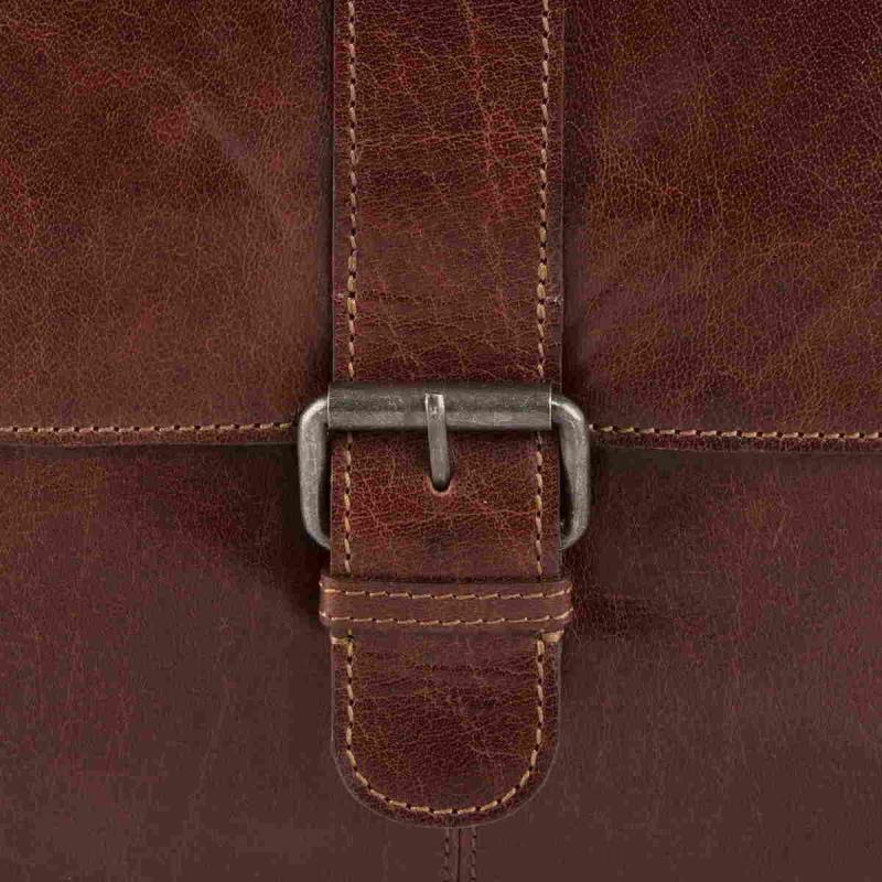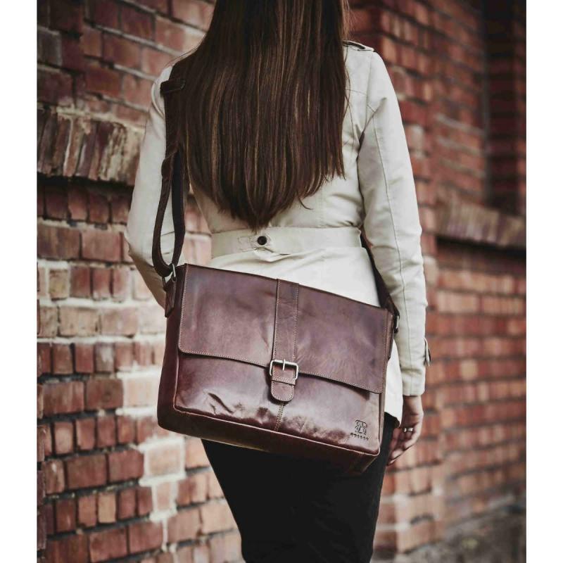 Exclusive stylish leather bag in waxed buffalo leather that fits both men and as women's bag. The case with magnetic closure has computer compartments for a 13 ″ computer, several small compartments on the inside as well as pockets with YKK zipper both on the front and back. The leather bag with dimensions 36x29x9 cm has an adjustable shoulder strap and comes packed in a cloth bag. It is made of BSCI certified leather that complies with EU "REACH" standards.