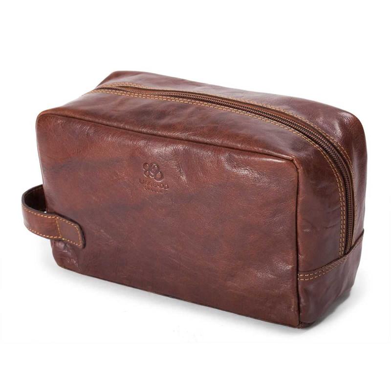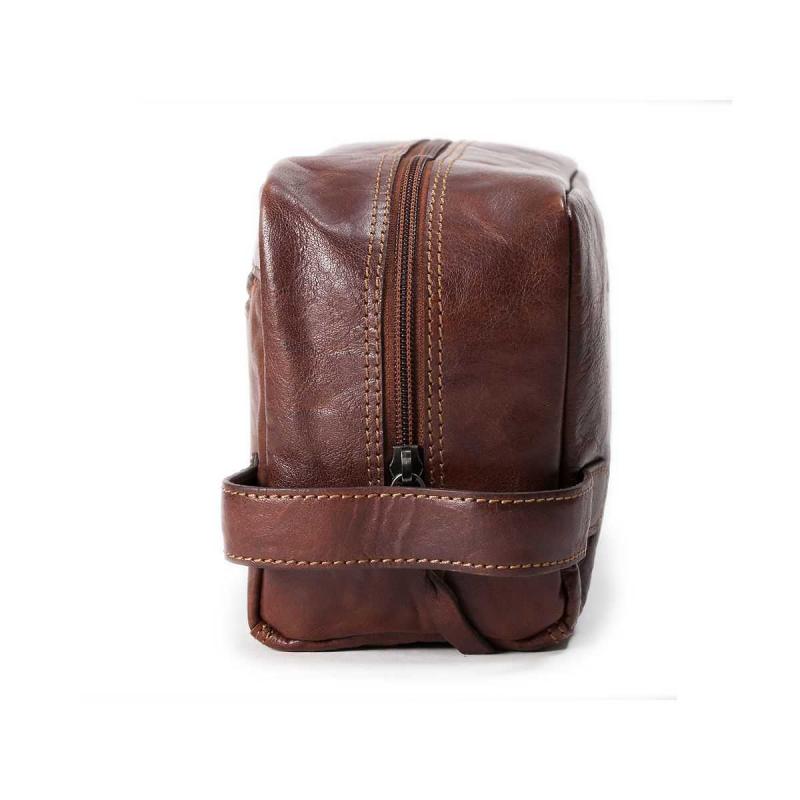 Refined Leather Toiletry Bag Box Brandy for Smart Travel
