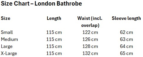 Part of the Aquanova London collection, this robe includes refined details such as a shawl collar with satin piping, deep side pockets, a matching waist belt, and a Regular Fit with generous overlap for relaxed wear. The fit is straight and unisex, designed to fall below the knee for both men and women.