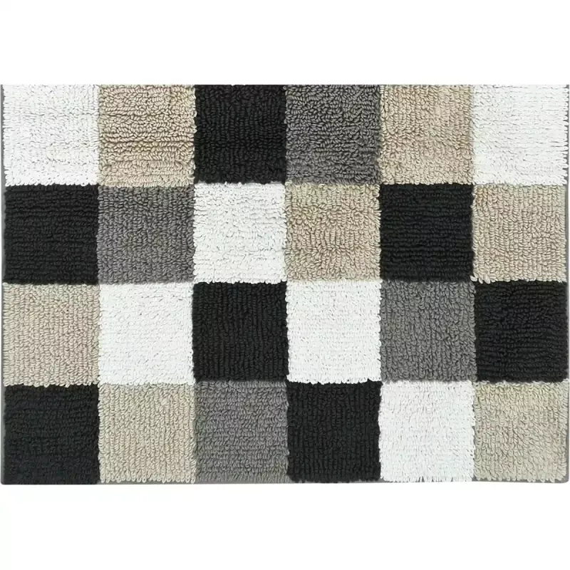 Luxury Check Bath Mat Square 1011-37 Natur