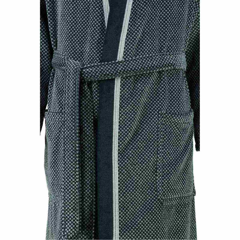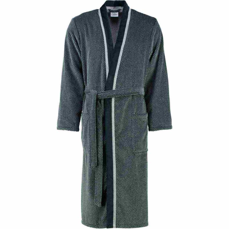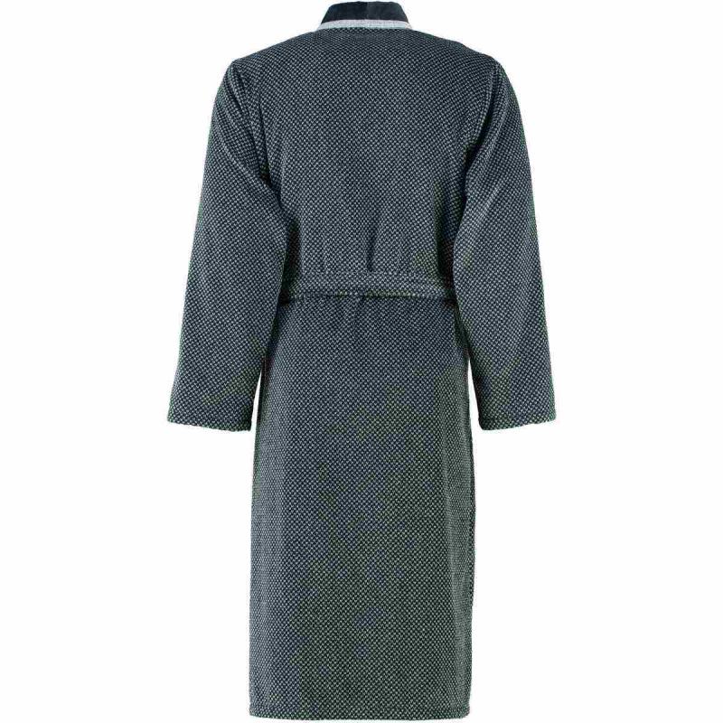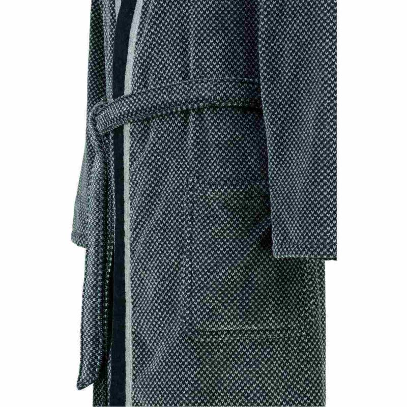 This fluffy and soft men's bathrobe 4839-79 in the colors silver grey and black from Cawö is particularly kind to the skin. It is an elegant modern style kimono bathrobe in fluffy velour quality made in Germany of 100% cotton of highest quality. The robe is easy to care for and suitable for tumble drying.