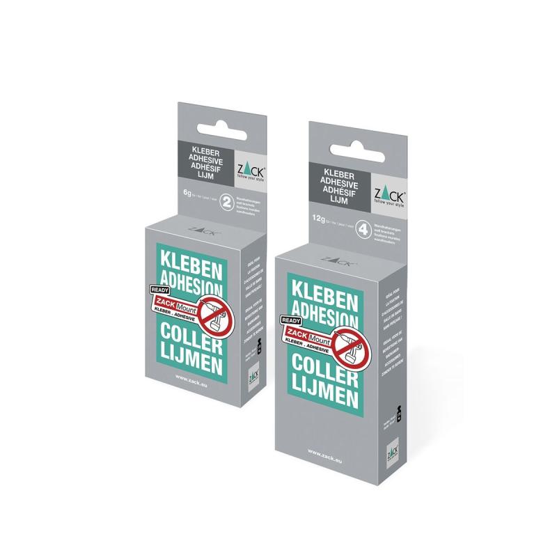 This ZACK mounting glue (12g) is perfect for attaching wall brackets without drilling. It provides secure wall mounting, and the package includes enough glue for about four larger-sized wall brackets. Decor items are not included, and product safety data sheets are available upon request.
