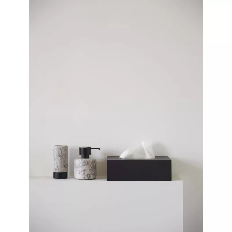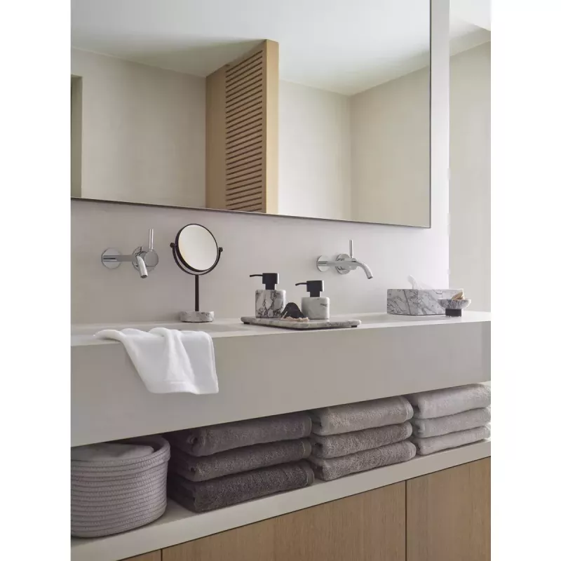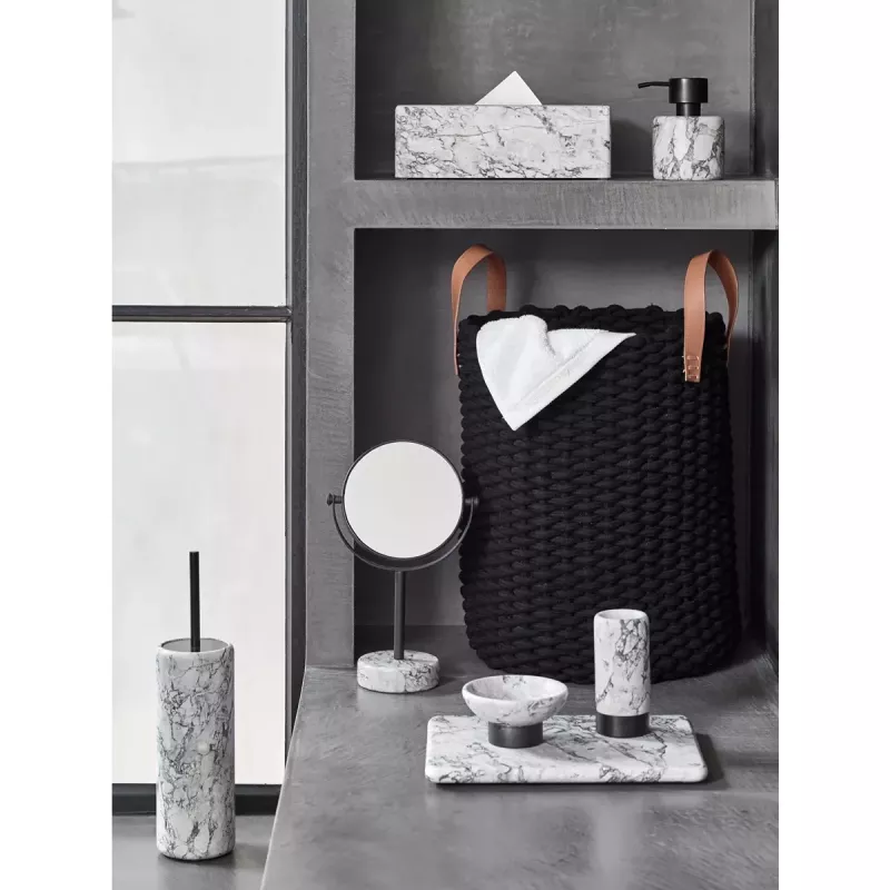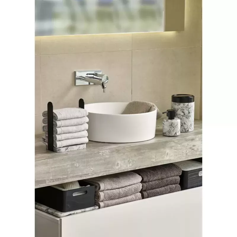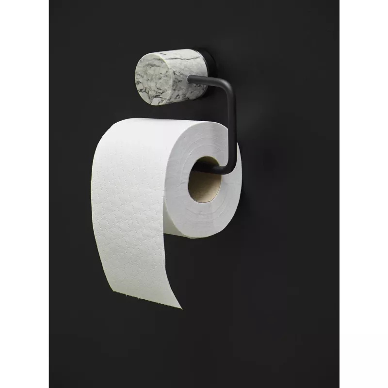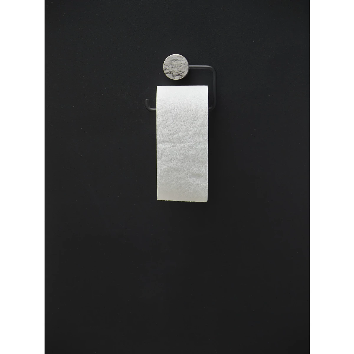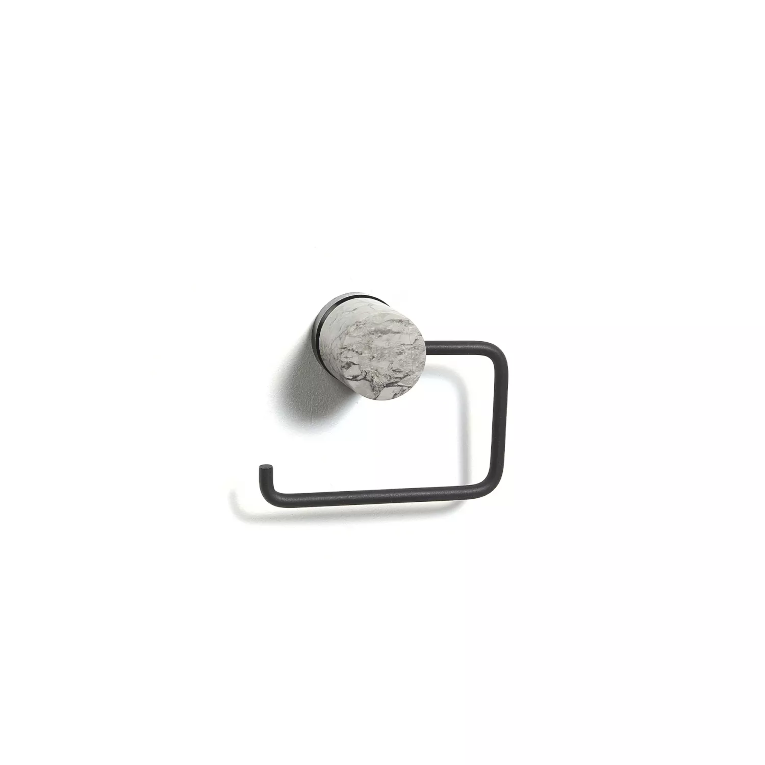 Add a touch of sophistication to your bathroom with the Nero Toilet Roll Holder Alba from Aquanova. This elegant wall-mounted toilet paper holder combines light natural stone with a matte black steel arm, offering a timeless and refined look. The light grey stone with natural black and white marbling ensures every piece is truly unique.