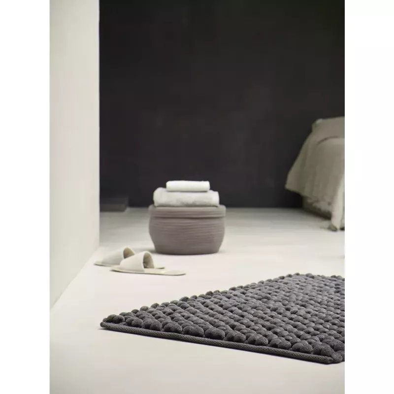 Give your bathroom or toilet a luxurious and inviting look with the Nomad Bath Mat Slate from Aquanova. This handmade dark grey bath mat is both elegant and practical, featuring large loops that provide a soft underfoot feel and a stylish design.