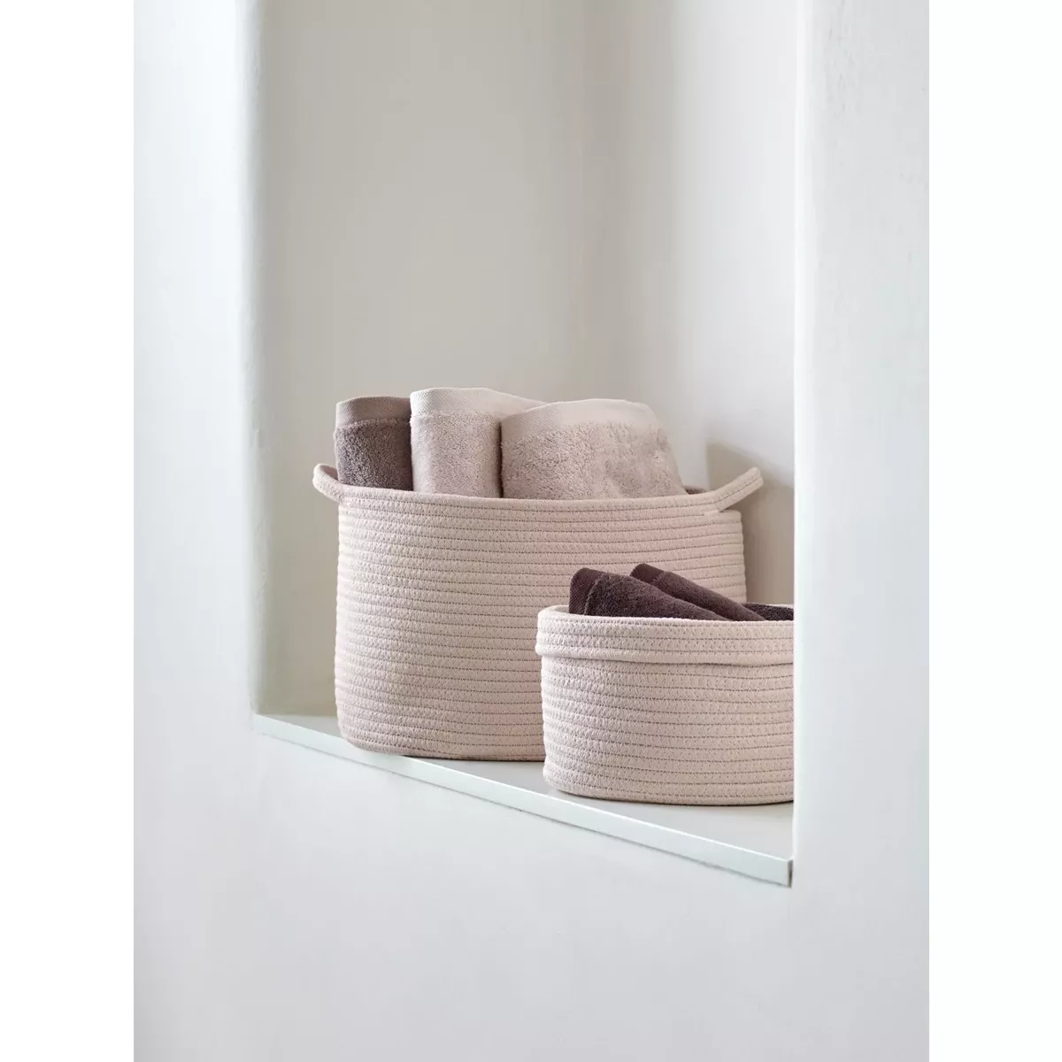 Made from a durable blend of 70% cotton and 30% polyester, the Rena baskets combine strength with a soft, natural texture. They are ideal as versatile storage boxes for toiletries, towels, toys, magazines, accessories or other household items, helping you keep your home tidy and organised.
