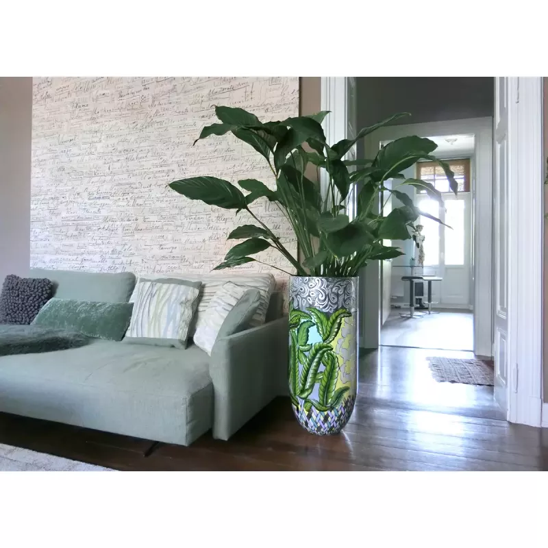 Decorative Overpot for Plants - Elevate your interior design with the Toms Drag Cachepot XL Leaves Silver Line 4498, a stunning overpot that combines artistry and functionality. Perfect for plant lovers and those looking to add a tropical touch to their home, this high flowerpot is designed to impress.