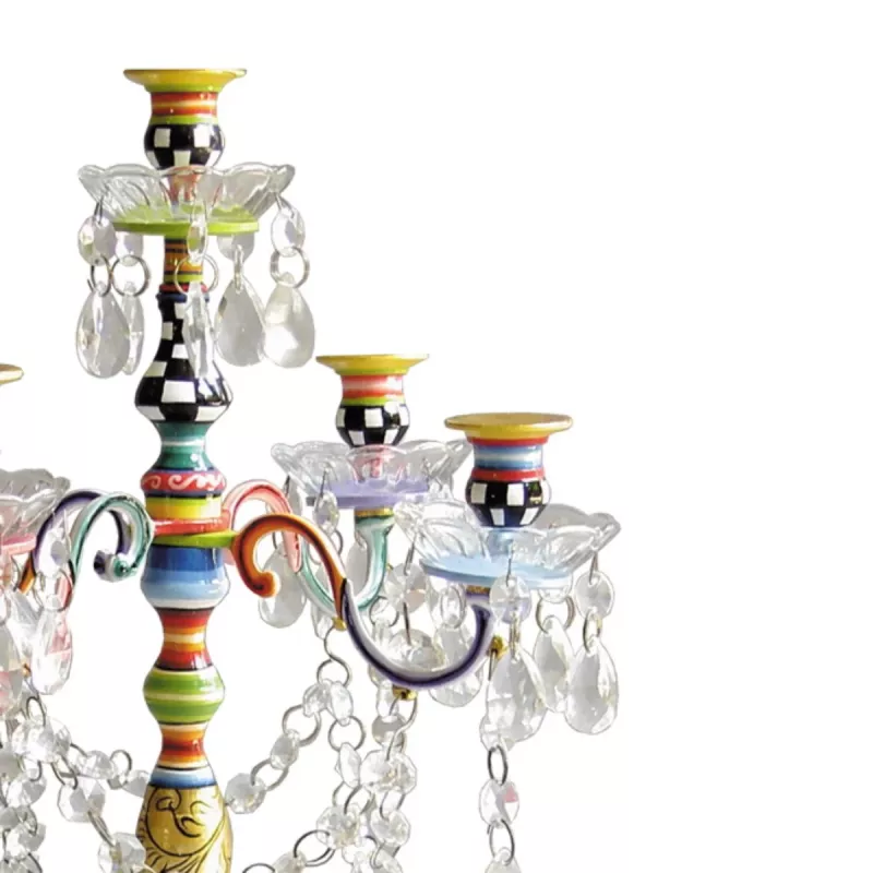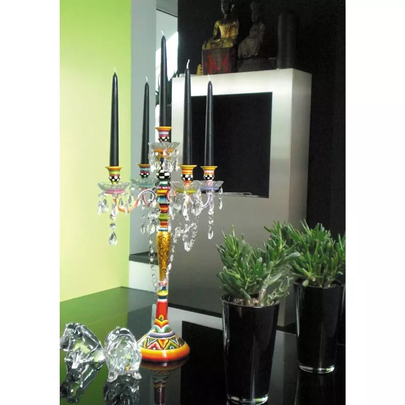 A Handcrafted 5-Candle Candelabra with Crystal Accents - Illuminate your home in style with the Toms Drag Candleholder M 4012, a luxurious 5-candle candelabra that combines bold design with vibrant color and elegant crystal accents. This eye-catching candleholder features four arms and is adorned with garlands of crystals between the candle holders, adding a touch of glamour and sophistication to any room. Standing at 62 cm high, it’s the perfect centerpiece for your dining table, living room, or mantelpiece, creating a stunning visual impact in your space.