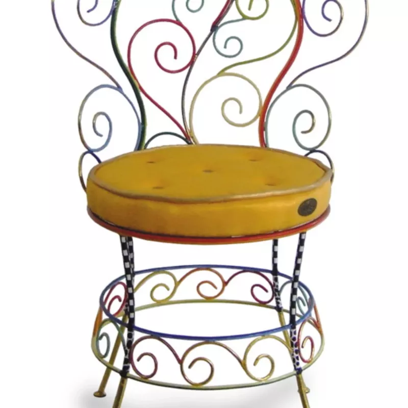 A Handcrafted Artistic Masterpiece - Add a touch of elegance and artistic flair to your home with the Toms Drag Chair Gazebo 101827. This ornate, handcrafted chair is a true statement piece, featuring intricately twisted metal wire curls, hand-painted in vibrant Toms Drag colors. With its tall, decorative backrest and bold artistic details, this one-of-a-kind design chair brings whimsy, sophistication, and unique charm to any luxury, eclectic, or contemporary interior.