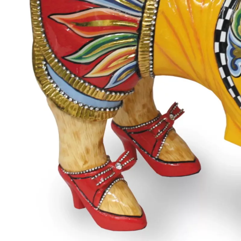 A Handcrafted Pug Dog Figurine with Red Shoes and Feathers - Add a whimsical touch and playful charm to your home with the Toms Drag Emilie Pug L 102110. This handcrafted pug dog figurine features the adorable Emilie, a stylish dog dressed in red shoes and adorned with feathers. Part of the Toms Drag Collection, this figurine is meticulously hand-painted and decorated with lashes, whiskers, earrings, and rhinestones, making it a truly unique and eye-catching piece. Designed by Tom Hoffmann, this pug dog figurine is made from marmorin, ensuring high-quality craftsmanship with a ceramic-like finish.