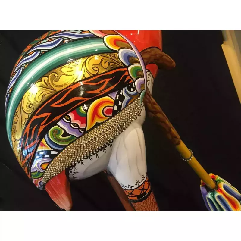 Bring whimsy and elegance to your interior with the Toms Drag Flamingo Felicity XL 102192, a stunning 157 cm handcrafted sculpture that blends art, humor, and vibrant design. This charming flamingo, part of the Classic Line with gold accents, is dressed in golden shoes, a stylish hat, an umbrella, and sparkling rhinestone details, making it a bold and eye-catching decorative object.