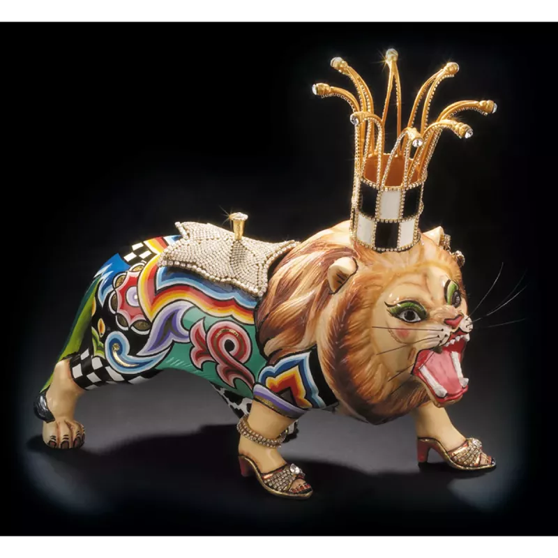 Add a touch of luxury and bold design to your home with the Toms Drag Lion L Running Clarance Crystal Lid 4055. This sparkling lion statue from the Diamond Collection is a true statement piece. Featuring a beautifully rhinestone-adorned lid with a hidden storage compartment, this handmade and hand-painted lion sculpture is a unique blend of art and functionality—perfect for storing small treasures like jewelry or keepsakes.