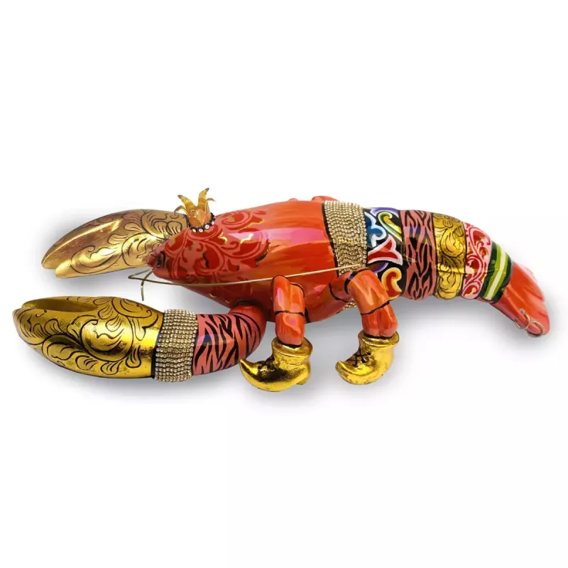 Order now and bring home this exclusive handcrafted lobster sculpture with rhinestone details and golden accents!"